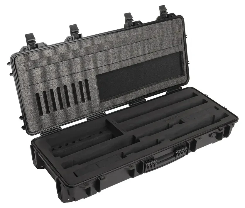 NEW -Â Heavy-duty travel case offers maximum protection for over and under shotguns. Heavy-duty, injection molded fiberglass shell construction. Folding handles and wheels for easy transport. Fitted EVA interior.